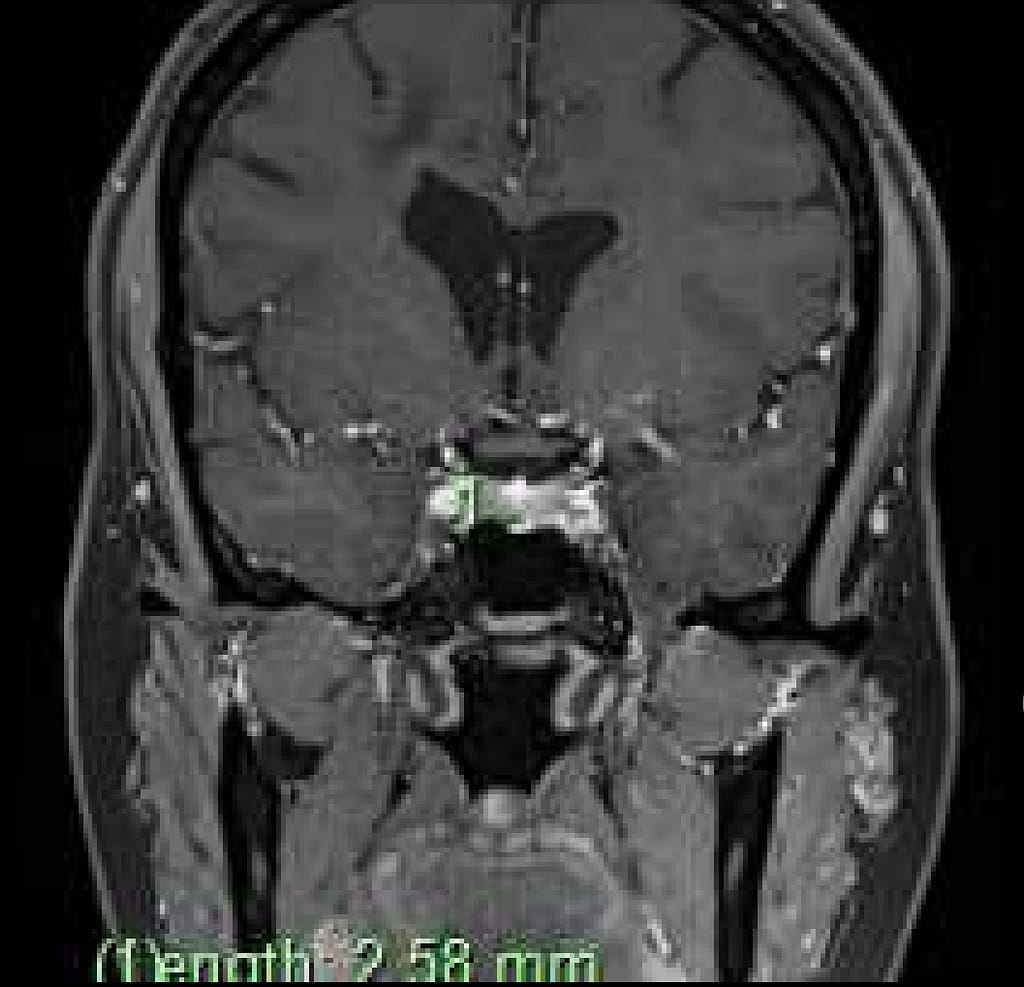 I opted for being safe than sorry. So, I visited the local optometrist to have my eyes tested. They strongly advised I go back to see Dr Tollesson. He then ordered the MRI. While there was no explanation for what caused the episode of vision loss, known as hemianopia, the incidental finding of the pituitary tumor has now alerted Dr Tollesson to what we need to focus on next. I recall him saying that due to the location, if it were bigger, it would cause pressure on the optic nerve as it grows, and explain loss of vision. Regardless, it’s not the cause based on the imaging he was looking at. It’s too small and currently classed a micro adenoma, should it grow in size, it will be called a macro adenoma.