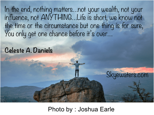 It doesn’t matter that things didn’t go the way you intended. In fact, don’t plan your life too far ahead because let’s face it, things change and it might not ever work out the way you thought. I’m not saying be senseless in your decision-making, I’m saying you’ve got to give yourself room to live, learn and grow. Enjoy the tiny glimpses of good that life DOES offer from time to time…before you know it, they may just outweigh the sucky times.